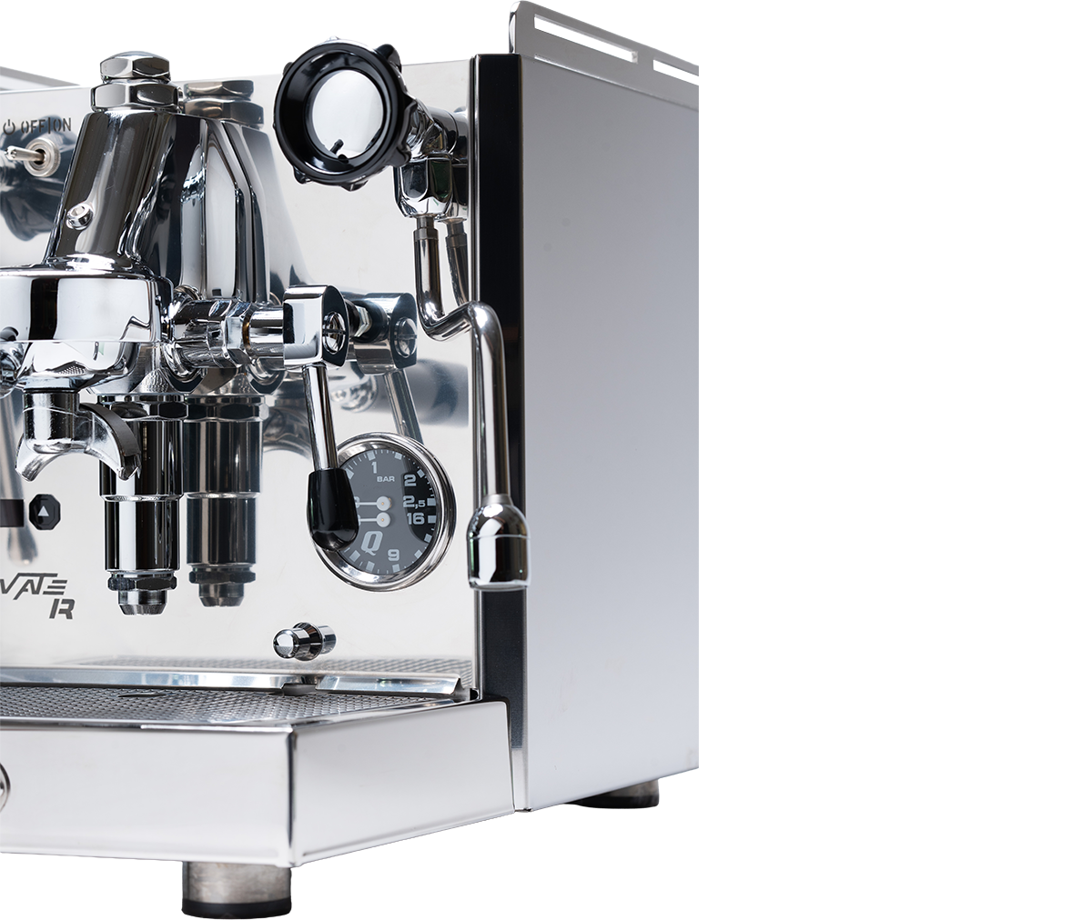 Το διπλό μανόμετρο παρέχει σαφή επισκόπηση τόσο της πίεσης εκχύλισης όσο και της πίεσης λέβητα, βοηθώντας σας να ρυθμίσετε με ακρίβεια την εκχύλιση και τη ροή εργασίας.