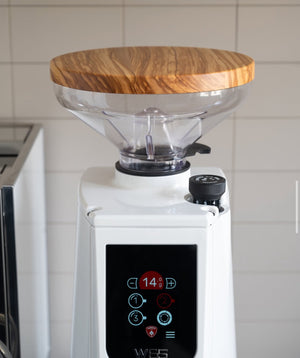 Αναβαθμίστε τον μύλο καφέ σας με ένα κομψό κάλυμμα μύλου από Wiedemann Κατασκευασμένο. Χειροποίητο από μασίφ ξύλο και σχεδιασμένο για να ταιριάζει Eureka Atom Το δοχείο των 300 γραμμαρίων είναι τέλειο – τόσο λειτουργικά όσο και αισθητικά.