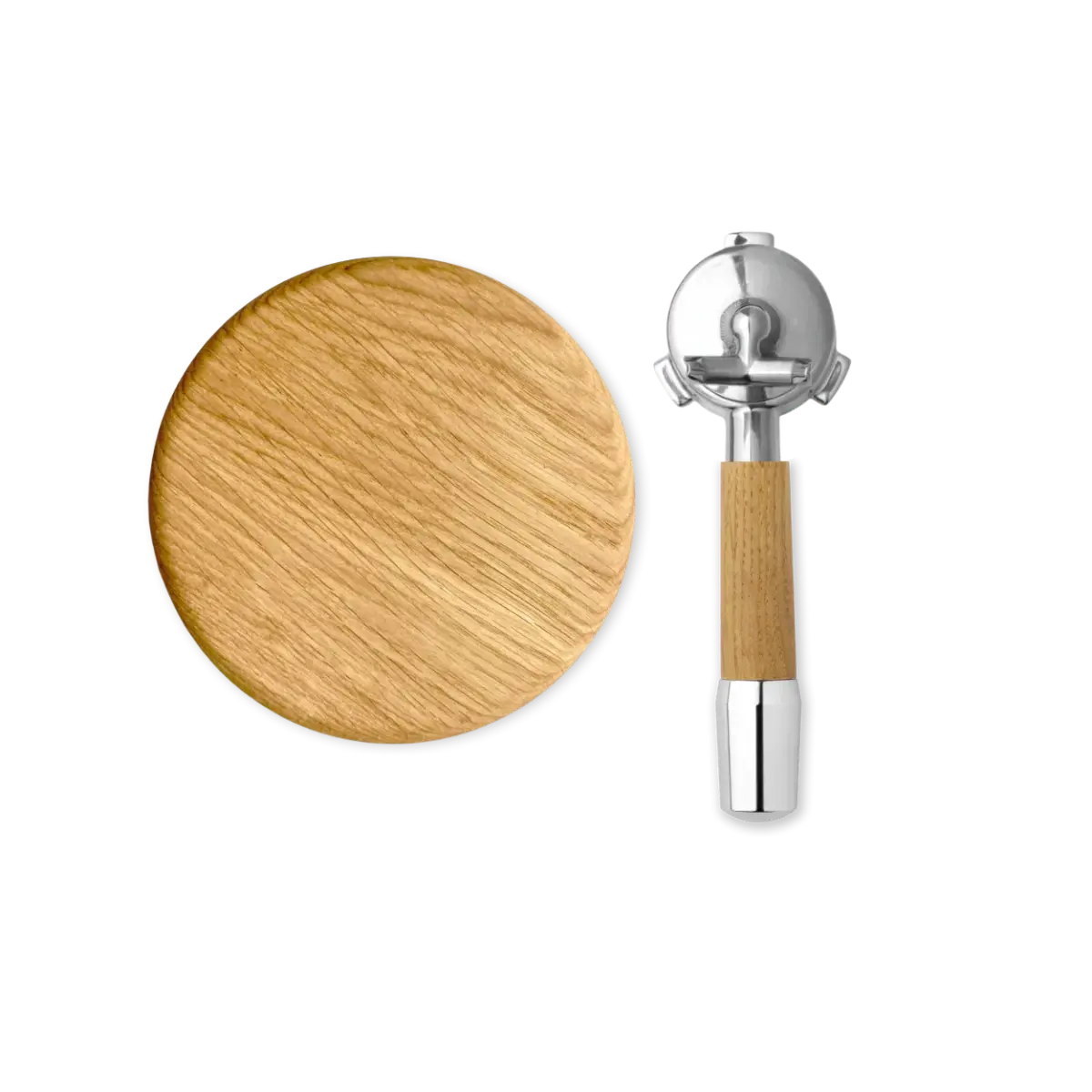 Το σετ περιλαμβάνει 1 x καπάκι για τη θήκη κόκκων καφέ από ξύλο και 1 x φίλτρο καφέ espresso με ξύλινη λαβή. Η μηχανή espresso δεν περιλαμβάνεται.