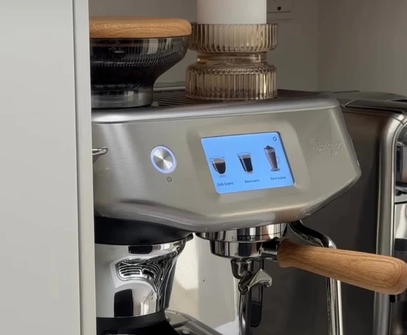 Σετ λαβών για Sage Barista Touch Impress είναι μια προσεγμένη επιλογή για εσάς που θέλετε να δώσετε στη μηχανή μια πιο εκλεπτυσμένη εμφάνιση και καλύτερη αίσθηση στο χέρι. Το σετ συνδυάζει ένα φίλτρο καφέ με ξύλινη λαβή με καπάκι για τη θήκη κόκκων από συμπαγές ξύλο, προσφέροντας μια σαφή αναβάθμιση τόσο στην αισθητική όσο και στην εμπειρία χρήσης. Για όσους εκτιμούν τις λεπτομέρειες στη γωνιά του εσπρέσο, αυτό το φίλτρο καφέ με ξύλινη λαβή δίνει μια πιο ζεστή, προσωπική εντύπωση. Πιστεύουμε ότι ταιριάζει ιδιαίτερα σε σπίτια όπου ο καφές δεν είναι απλώς ρουτίνα, αλλά μια τέχνη.