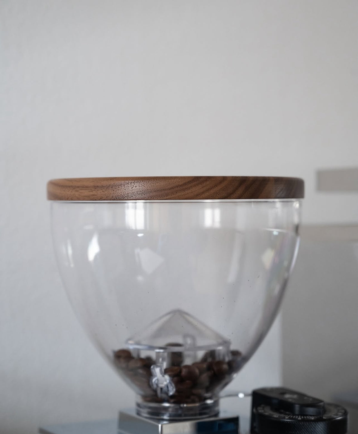Βελτιώστε την εμφάνιση και την αίσθηση της γωνιάς του καφέ σας με ένα χειροποίητο ξύλινο καπάκι από... Wiedemann Κατασκευασμένο. Σχεδιασμένο ειδικά για το στρογγυλό δοχείο των 350 γρ. που περιλαμβάνεται Eureka Mignon Libra – αυτό το καπέλο συνδυάζει τη λειτουργικότητα με μια ζεστή, φυσική έκφραση.