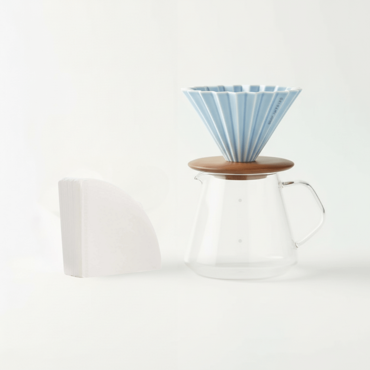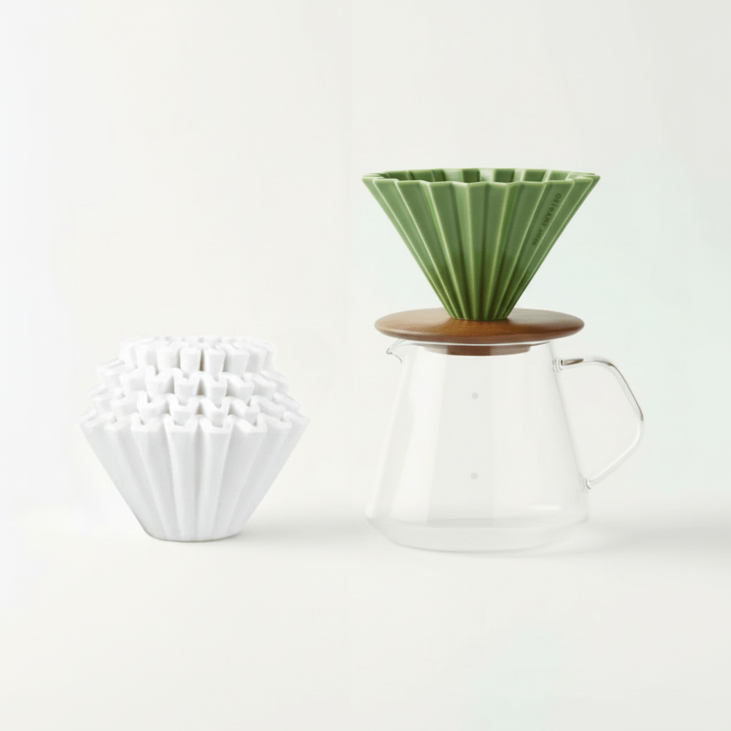 Ιαπωνικό σετ χειροποίητης παρασκευής - Origami dripper + 100 πακέτο φίλτρα