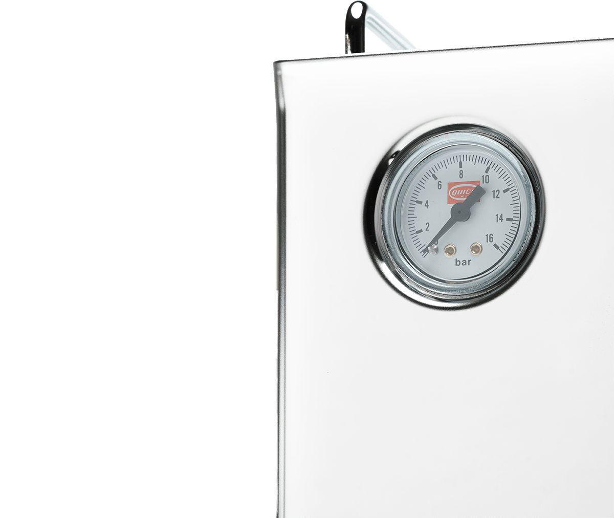 Το ενσωματωμένο μανόμετρο (0–16 bar) δείχνει την πίεση εκχύλισης σε πραγματικό χρόνο και βοηθά στη ρύθμιση του αλέσματος, της δοσολογίας και του tamp για την ιδανική δόση.