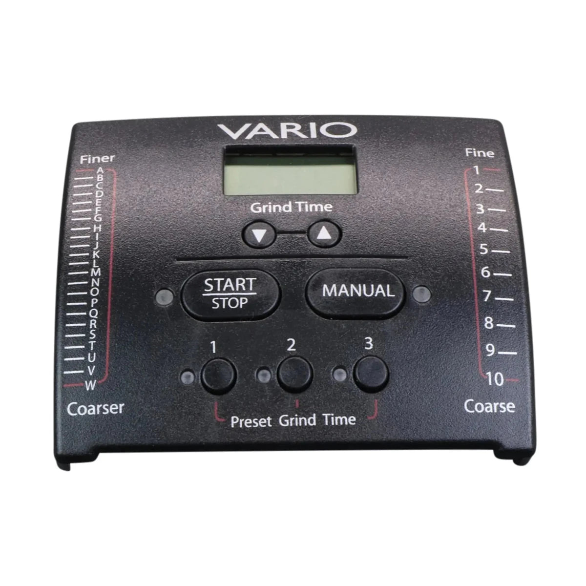 Η μονάδα οθόνης Baratza Vario 8075 είναι ένα αυθεντικό ανταλλακτικό για όσους θέλουν να επαναφέρουν τον μύλο σε λειτουργία χωρίς να θυσιάσουν την εφαρμογή ή τη λειτουργία. Για τα σωστά ανταλλακτικά καφετιέρας και αξιόπιστα ανταλλακτικά για εξοπλισμό καφέ, αυτή είναι μια πρακτική λύση όταν η μπροστινή επιφάνεια ή η μονάδα οθόνης χρειάζεται αντικατάσταση. Η εικόνα δείχνει μια μαύρη μονάδα οθόνης/μπροστινού μέρους με παράθυρο LCD, πεδίο κουμπιών και σαφείς ενδείξεις για τον βαθμό άλεσης και τον προεπιλεγμένο χρόνο άλεσης. Αυτή είναι μια καλή επιλογή όταν ήδη γνωρίζετε ποιο ανταλλακτικό χρειάζεστε και θέλετε να το αντικαταστήσετε με τον σωστό αριθμό είδους.