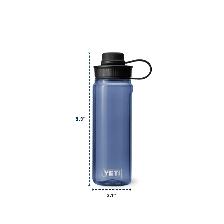 Το μπουκάλι νερού YETI Yonder Tether 1 λίτρου σε μπλε σκούρο χρώμα είναι ένα ελαφρύ και ανθεκτικό μπουκάλι νερού σχεδιασμένο για τις δραστήριες περιπέτειές σας. Κατασκευασμένο από 50% ανακυκλωμένο πλαστικό (εκτός από το καπάκι) και εντελώς χωρίς BPA, αποτελεί μια οικολογική επιλογή για όσους θέλουν να ταξιδεύουν ελαφριά χωρίς συμβιβασμούς.